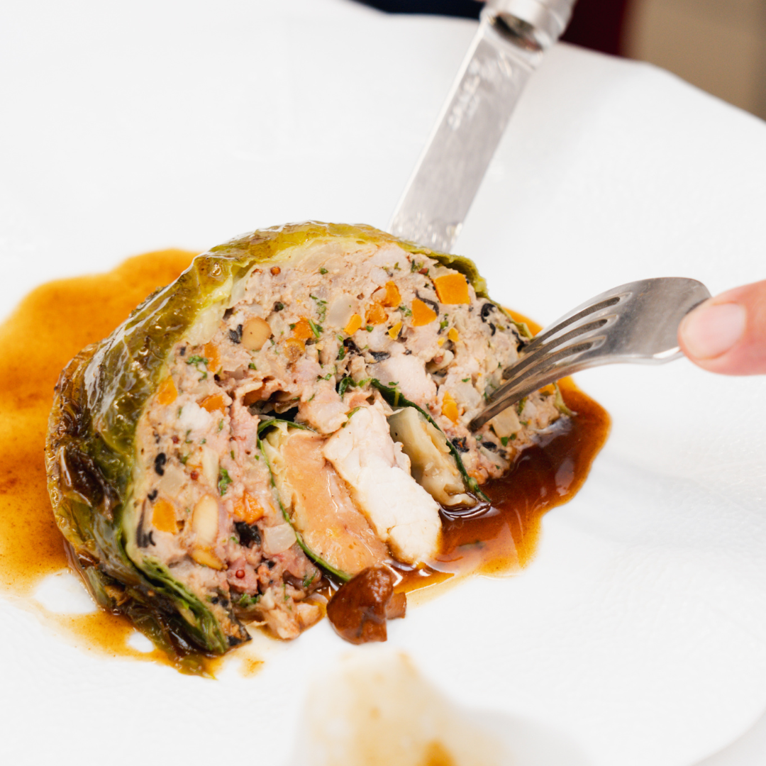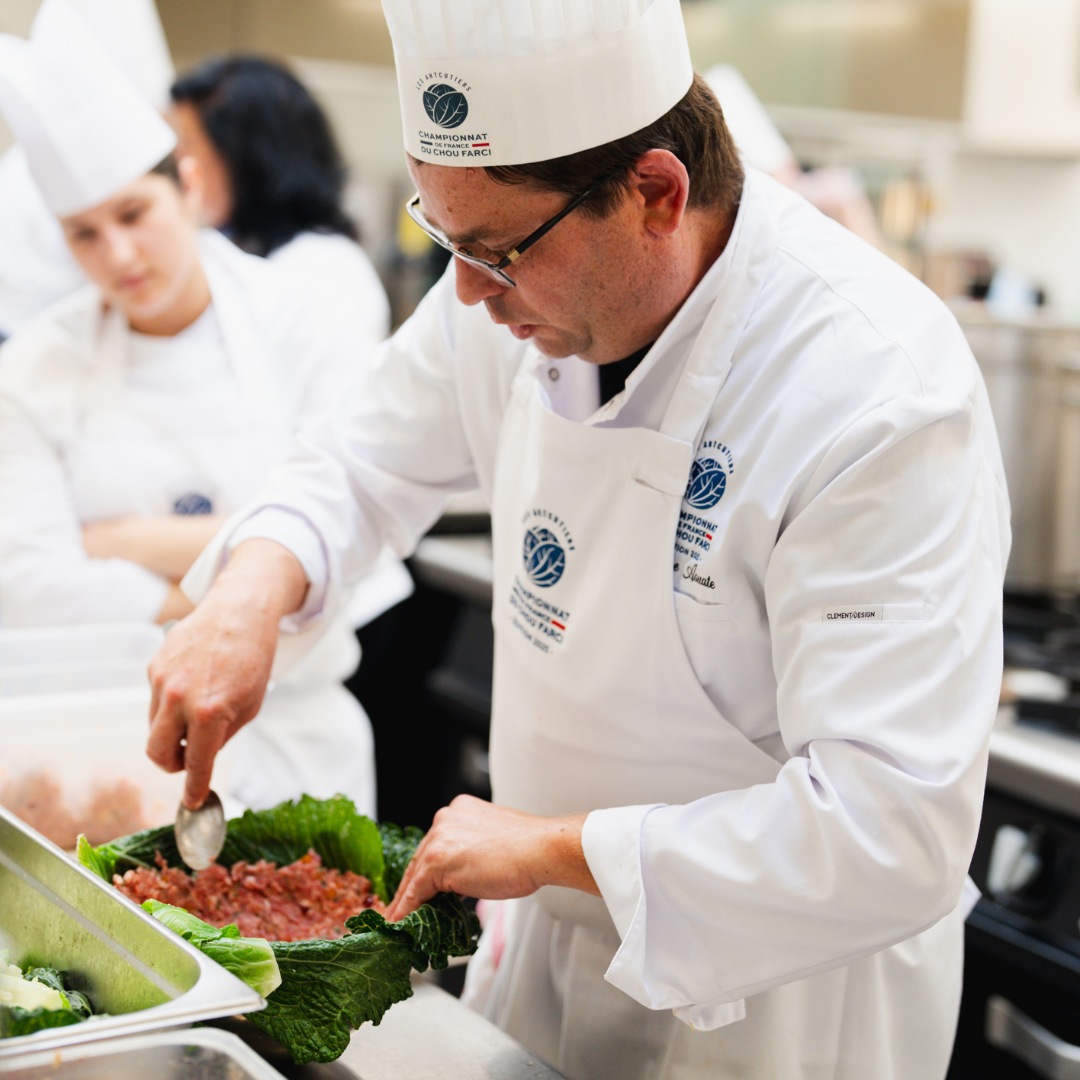 Le 22 septembre, Olivier Caillon, charcutier chez Arnaud Nicolas, a remporté la finale du championnat de France du chou farci, qui s’est tenue au CEPROC, à Paris dans le 19e. La compétition a rassemblé 10 professionnels : des chef(fes) cuisinier(ères) et des chef(fes) charcutier(ères) de toute la France.